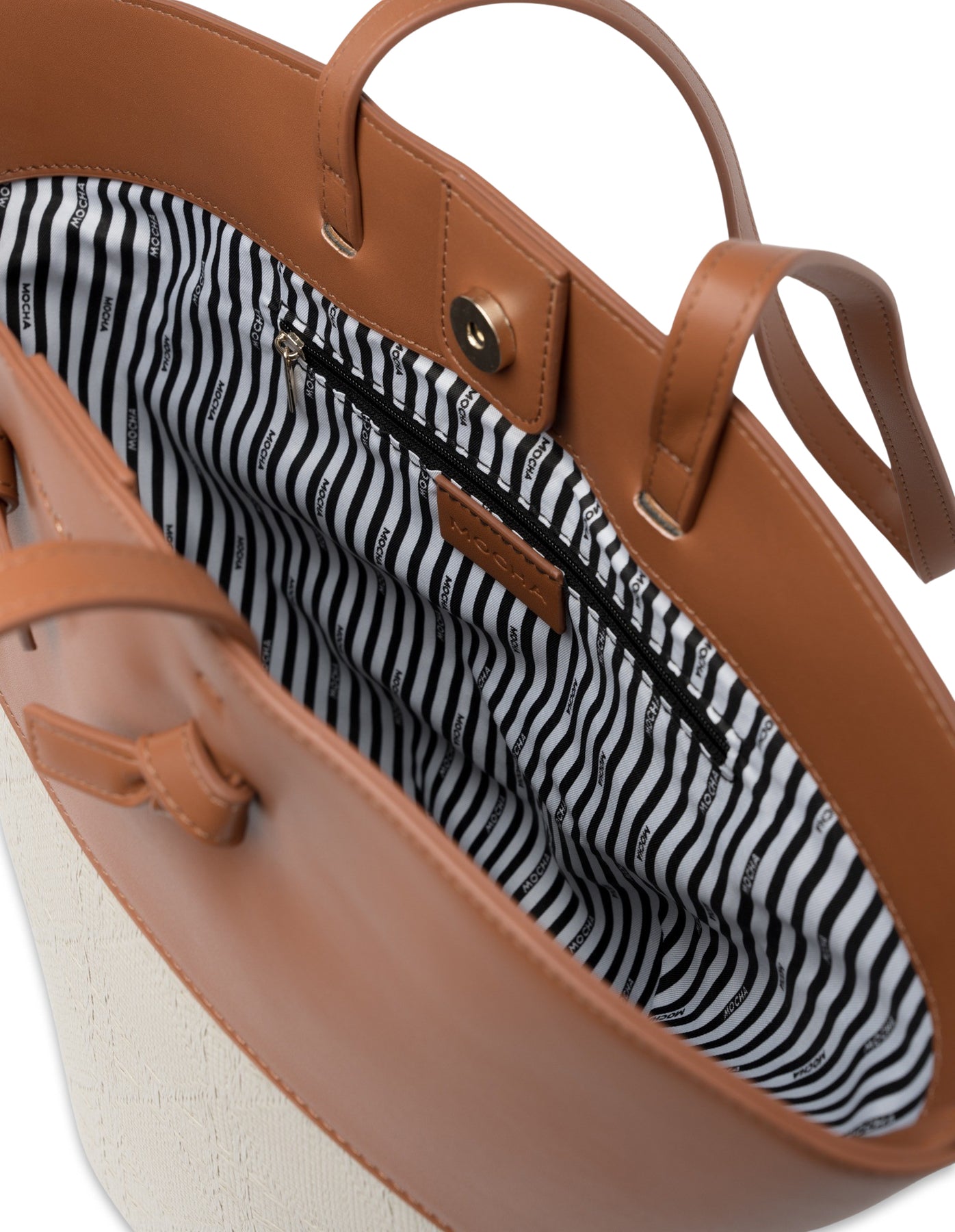 - Signature Mocha striped lining